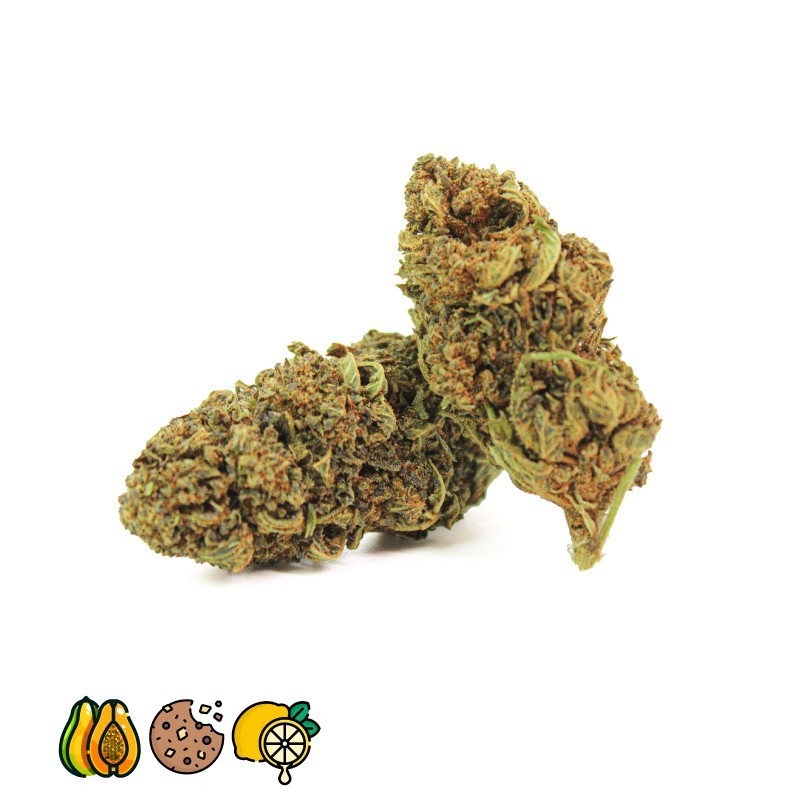 Dieses Produkt ist ausschließlich zum Aufgießen bestimmt.Es handelt sich um eine hübsche Blume mit voluminösen und relativ zarten Knospen. Auf ihrer Oberfläche ragen kleine Blätter, die mit Trichomen verziert sind, inmitten winziger orangefarbener Stempel hervor.